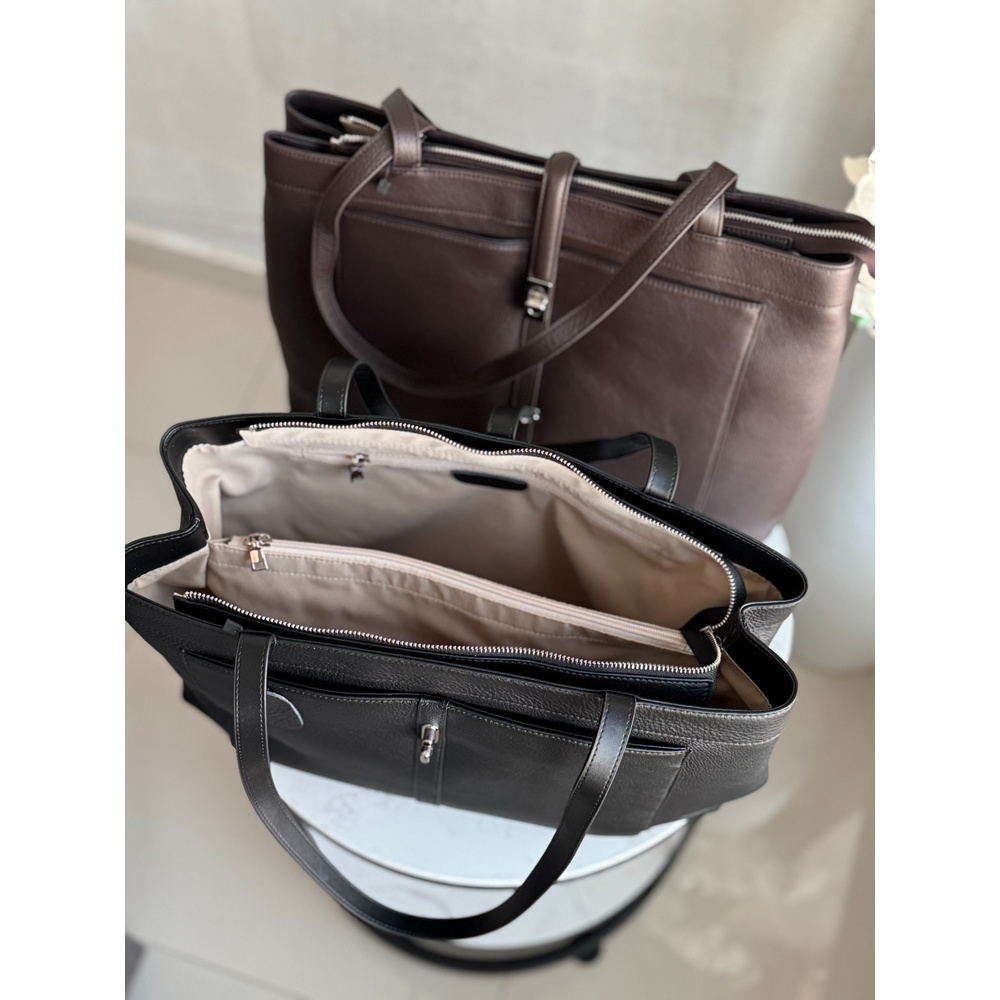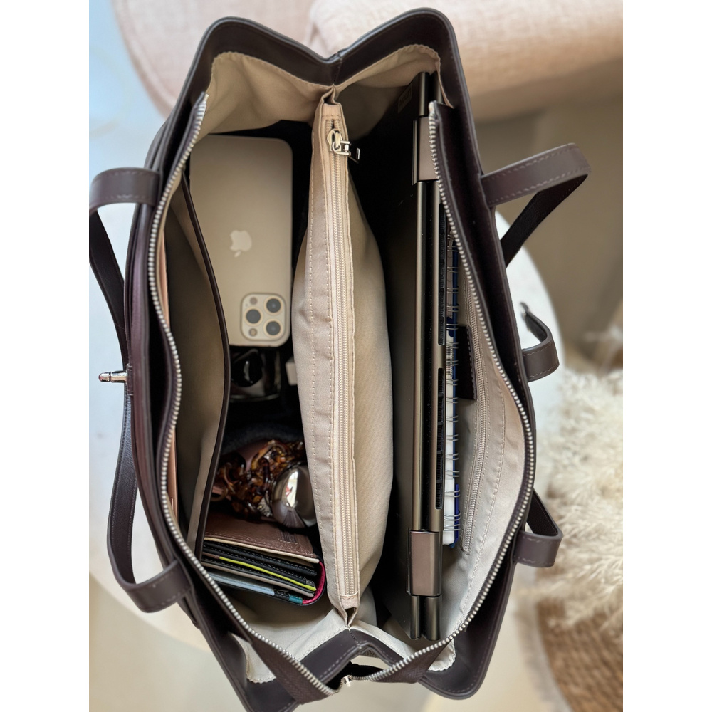 واسعة بما يكفي لاستيعاب اللابتوب وجميع مستلزمات العمل، وتوفر مزيجًا مثاليًا من الأناقة والعملية.