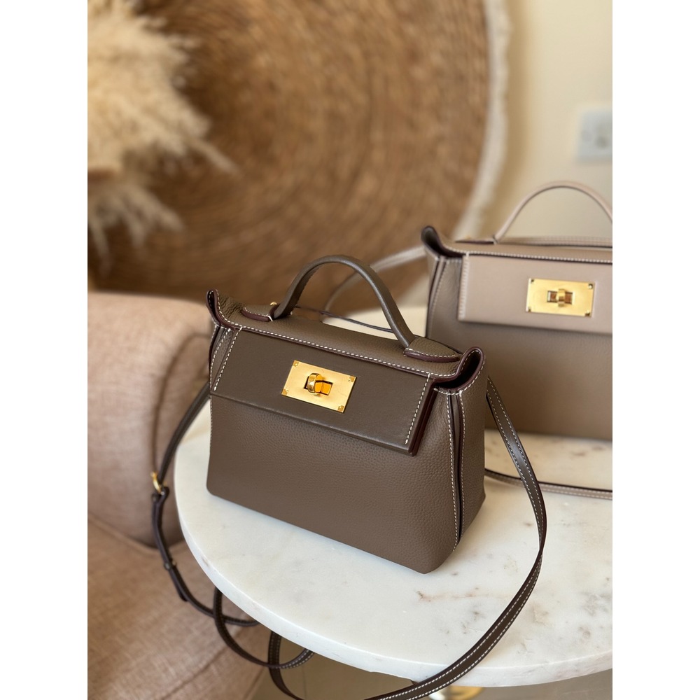 👜 Genuine Leather Feminine Bag with Gold Lock & Back Strap