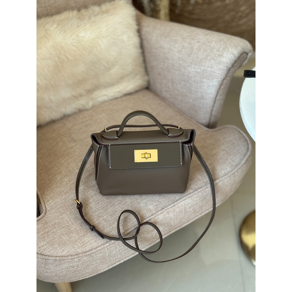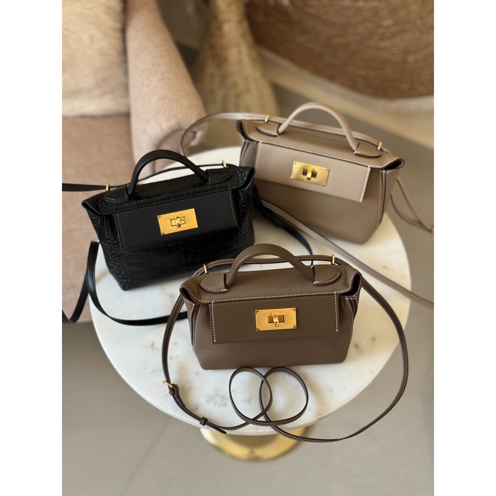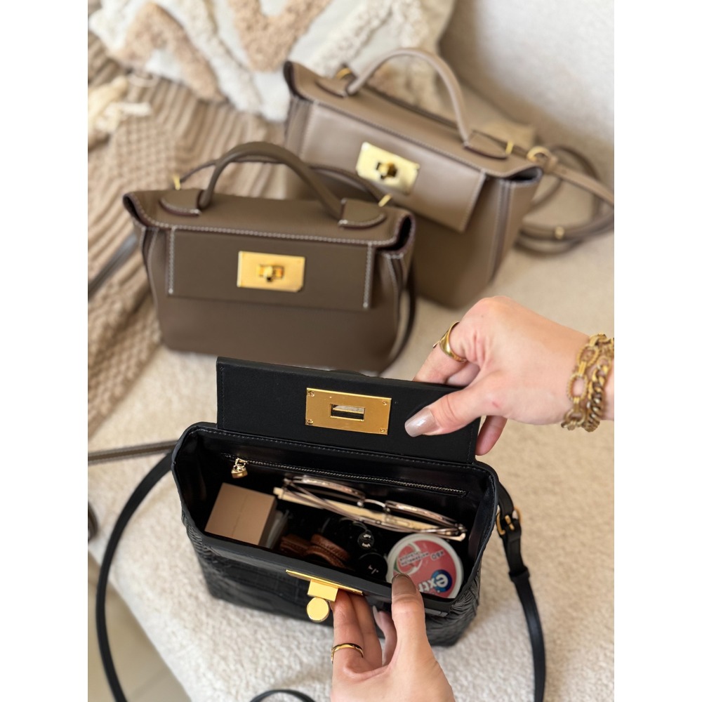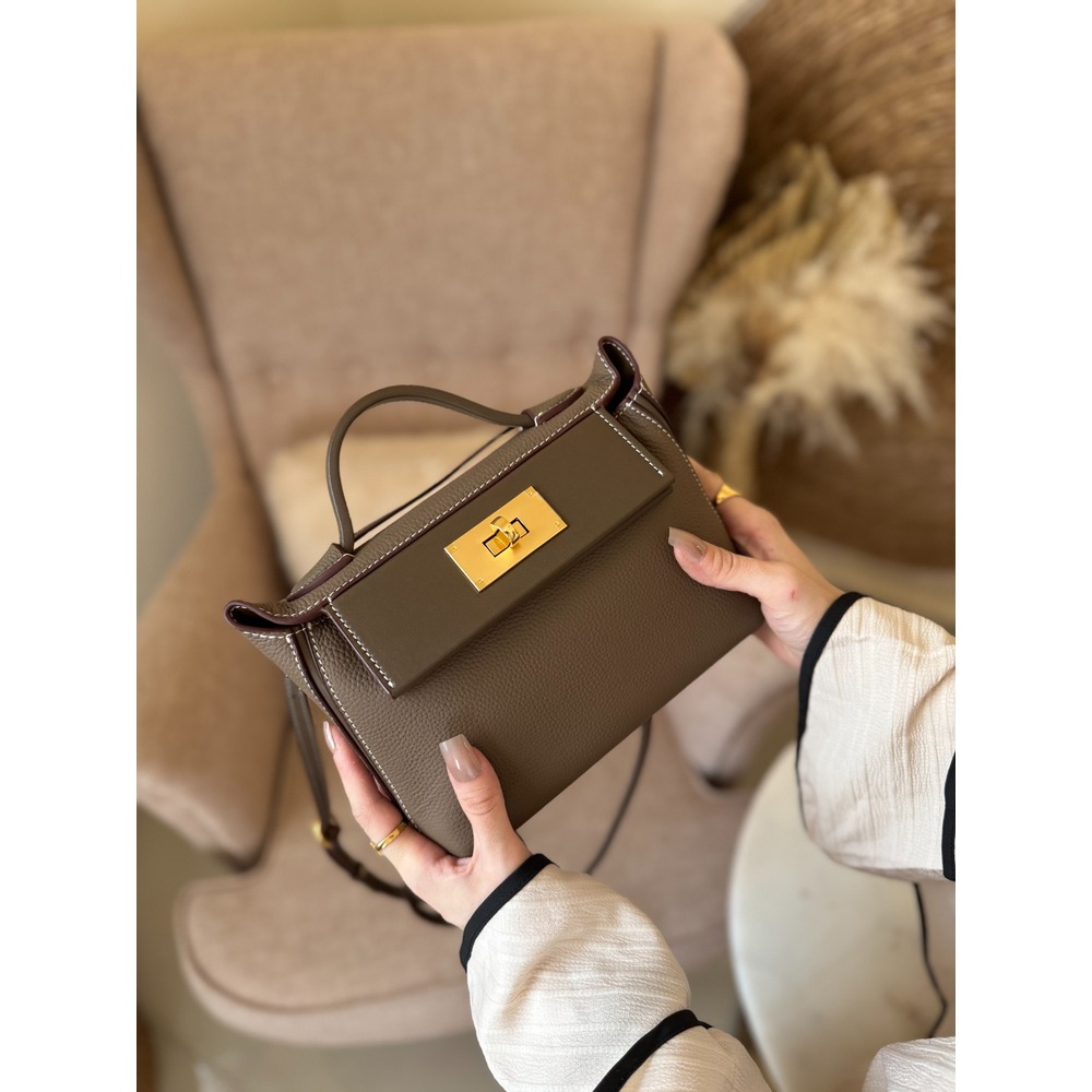 ✨A medium-size everyday handbag crafted from genuine leather, featuring a smart back strap for secure, comfortable wear and a premium gold-lock finish.
