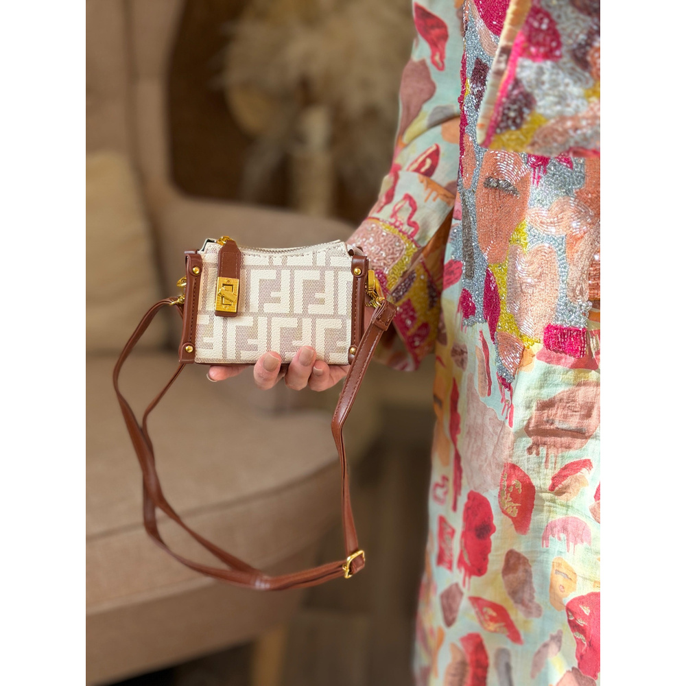 This Reem Store kids mini bag features a chic monogram-style body with smooth leather-look trim and elegant gold-tone hardware for a polished finish. Its compact size is ideal for little essentials, while the top zipper closure helps keep everything secure. The bag includes a detachable short strap for hand carry and a separate long strap for shoulder or crossbody wear, making it both stylish and practical for outings, visits, and special moments. Available in White and Black.