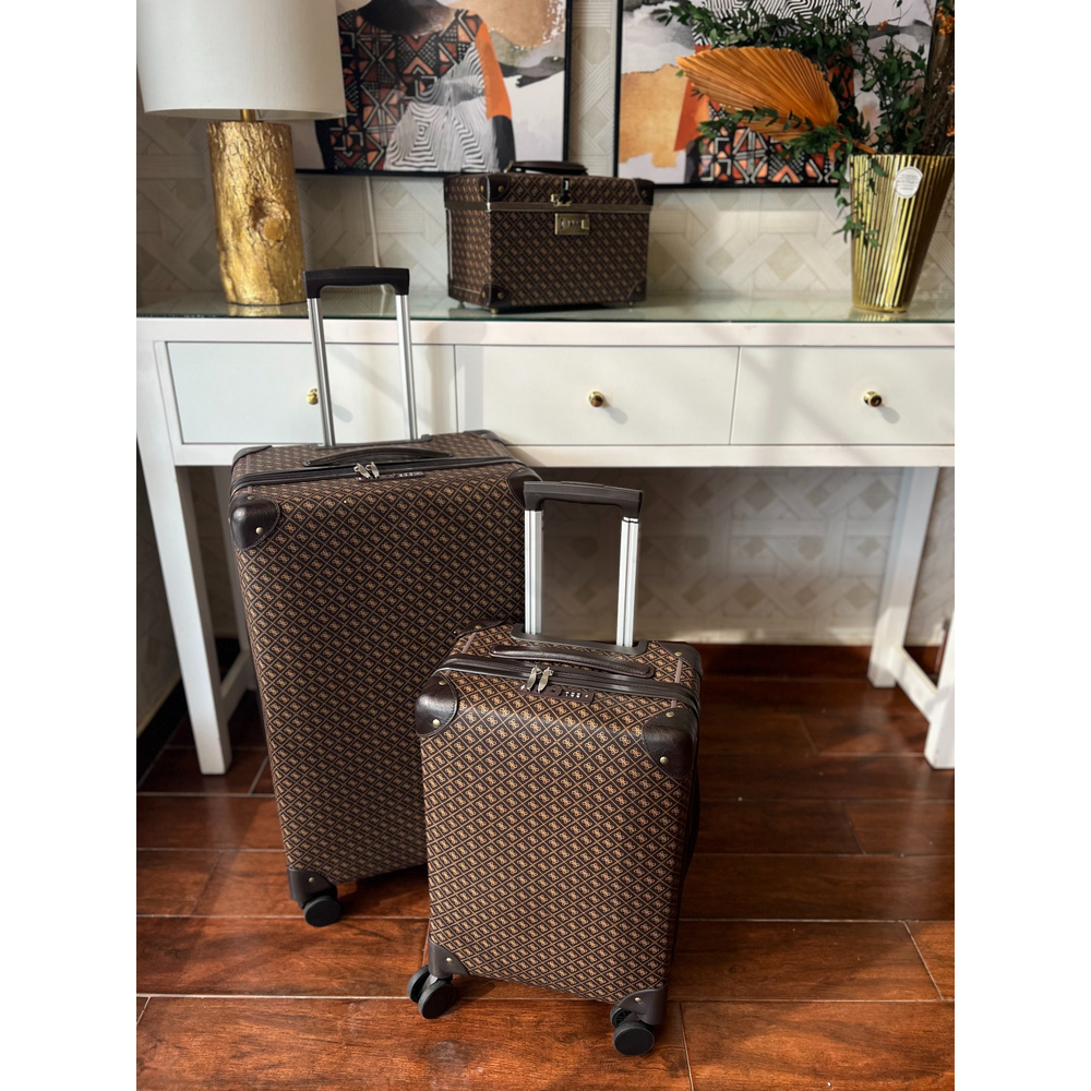 طقم ٣ شنط سفر جلد بنقشة بنية
