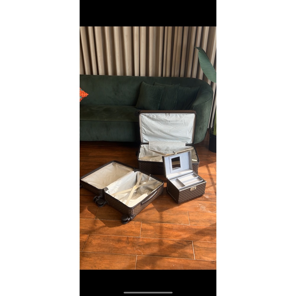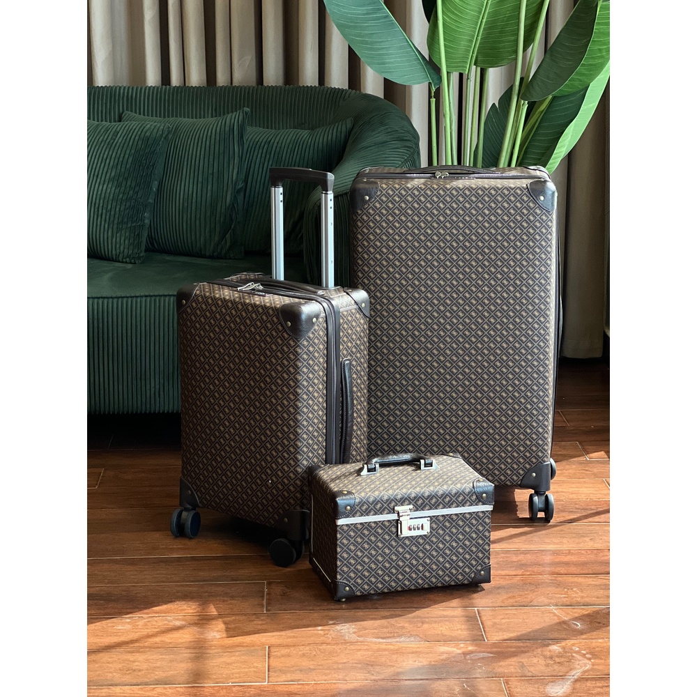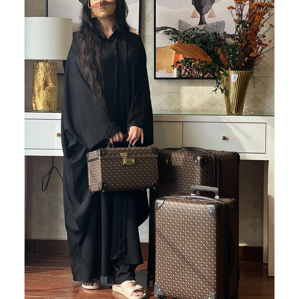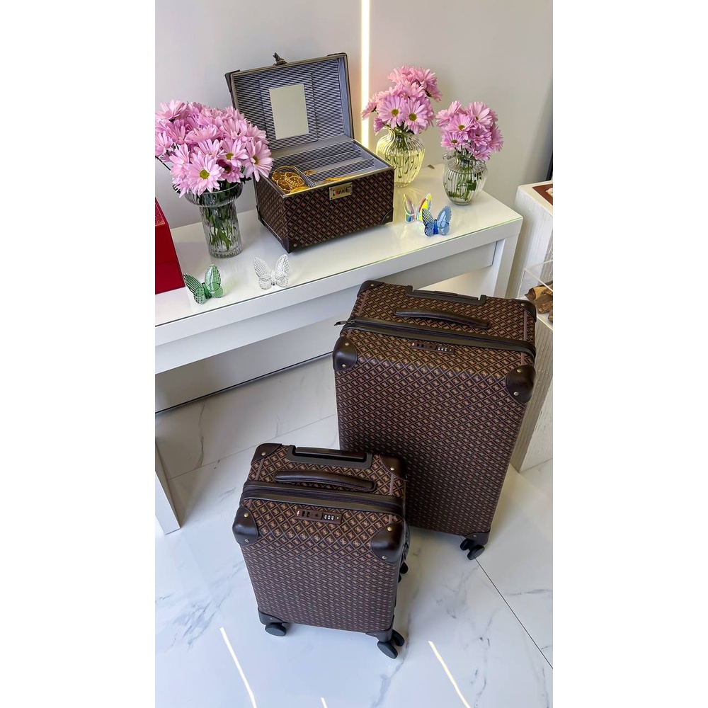 هذا الطقم من الحقائب فريد ومتوفر حصريًا في متجر ريم 🔒. مصمم من جلد بني بنقشة عتيقة، ليمنحك أناقة لا تتلاشى أبدًا. كل مقاس له غرضه: الكبير للرحلات الطويلة، والمتوسط للسفر القصير، والحقيبة الصغيرة لحفظ الذهب أو المجوهرات أو الضروريات 👰🏻🖤. مع فواصل داخلية لتنظيم الأغراض وأغطية واقية، يضمن هذا الطقم الأناقة والمتانة في كل رحلة.