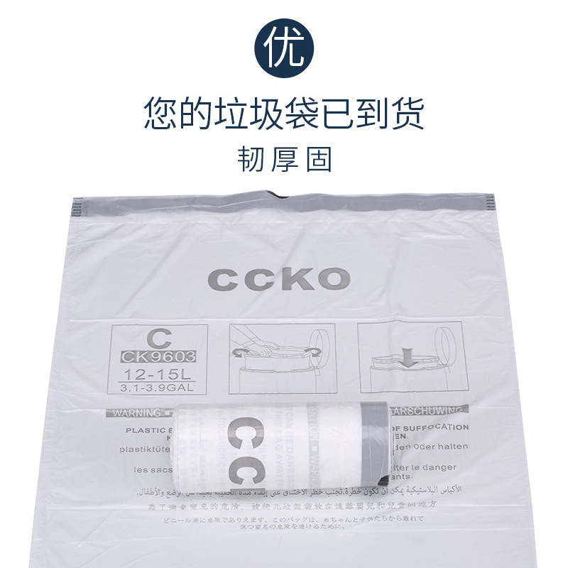 توفر أكياس القمامة بخيط السحب CCKO حلاً نظيفًا ومريحًا وصحيًا للتخلص من النفايات في المنزل أو المكتب. مصممة للسلال الصغيرة بسعة 7 إلى 10 لترات، ويبلغ قياس كل كيس 42×45 سم، ويتميز بخيط سحب قوي يسهل ربطه ورفعه وحمله دون فوضى أو تسرب. هذه الأكياس مصنوعة من بلاستيك سميك وعالي الجودة مقاوم للتمزق والتسرب—مثالية لمخلفات المطبخ، نفايات الحمام، أو سلال المكاتب. تحتوي كل لفة على 48 كيسًا، لتضمن لك خيارًا موثوقًا للاستخدام اليومي.