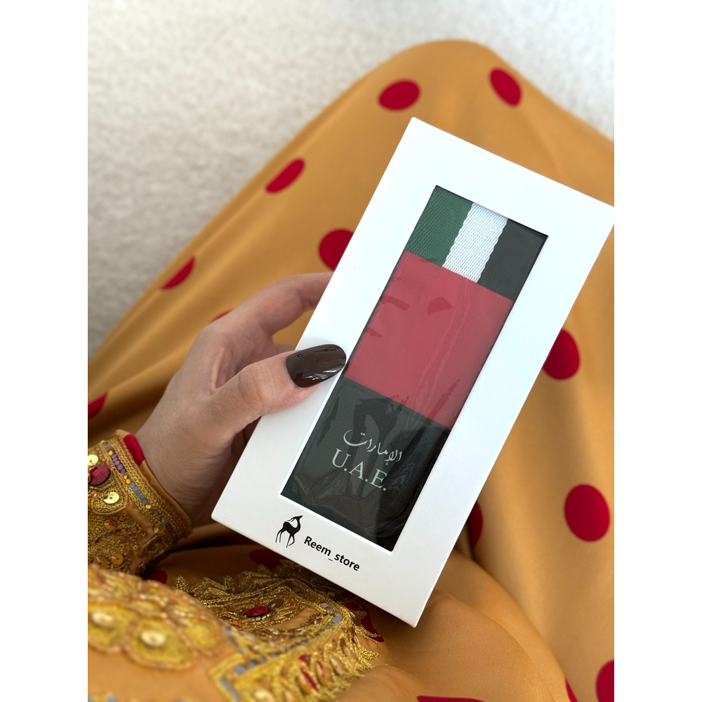 سير شنطة إماراتي فاخر مصمم خصيصاً للاحتفاء بيوم العلم واليوم الوطني. يتميز بتصميمه المميز بألوان علم الإمارات مع حواف فضية أو ذهبية أنيقة. يمكن تركيب هذا السير بسهولة على أي حقيبة لديكِ لتحويلها instantly إلى قطعة وطنية فخمة. يأتي معبأ بأناقة في علبة هدايا مميزة، مما يجعله الخيار الأمثل للتوزيعات والهدايا في المناسبات الوطنية.