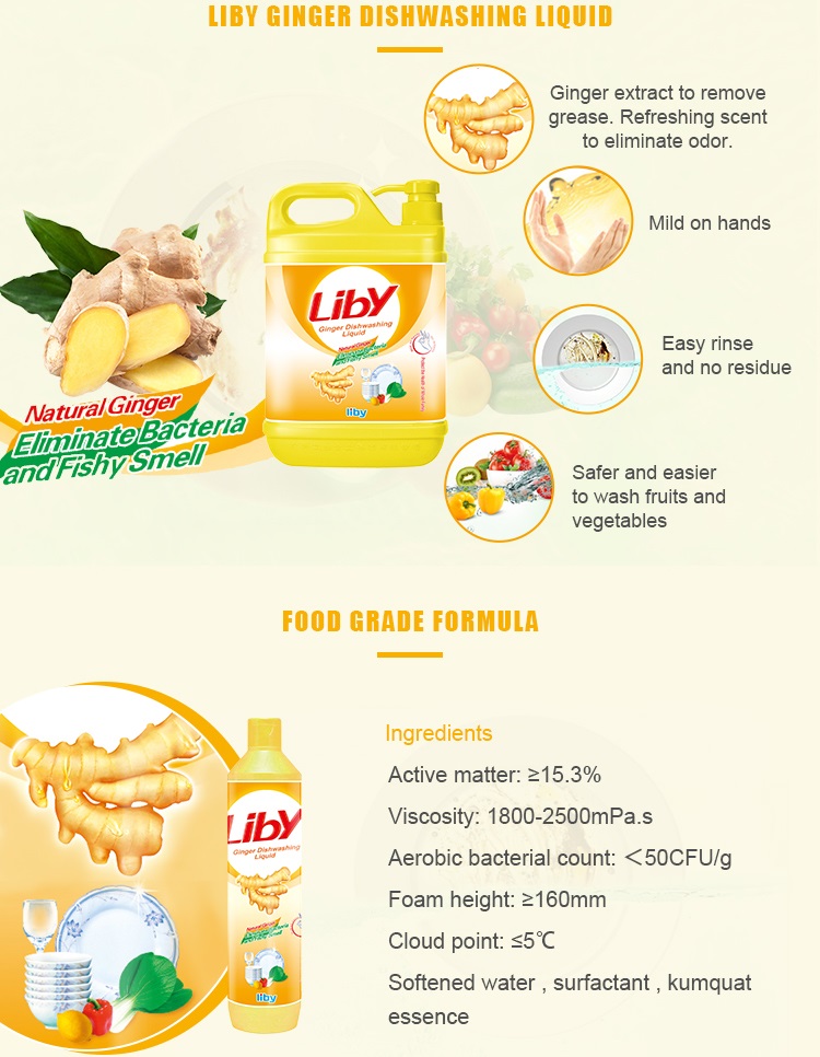 ليبي سائل غسيل الأطباق برائحة الزنجبيل قوي وصديق للبيئة برائحة زنجبيل دافئة. يزيل الدهون، يقتل 99.9٪ من الجراثيم، وآمن لليدين وغسل الفواكه والخضروات.