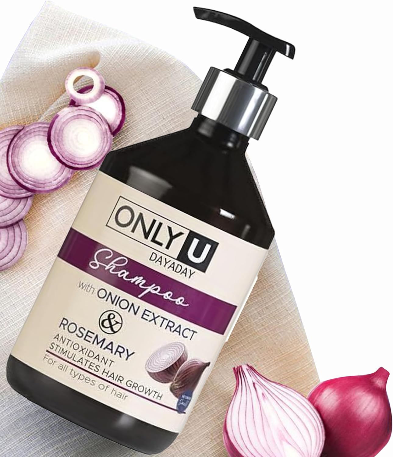 شامبو اونلي يو بخلاصة البصل وإكليل الجبل ينظف فروة الرأس بلطف وينشطها، مما يعزز قوة الشعر وكثافته مع حماية مضادة للأكسدة ولمعان حيوي.