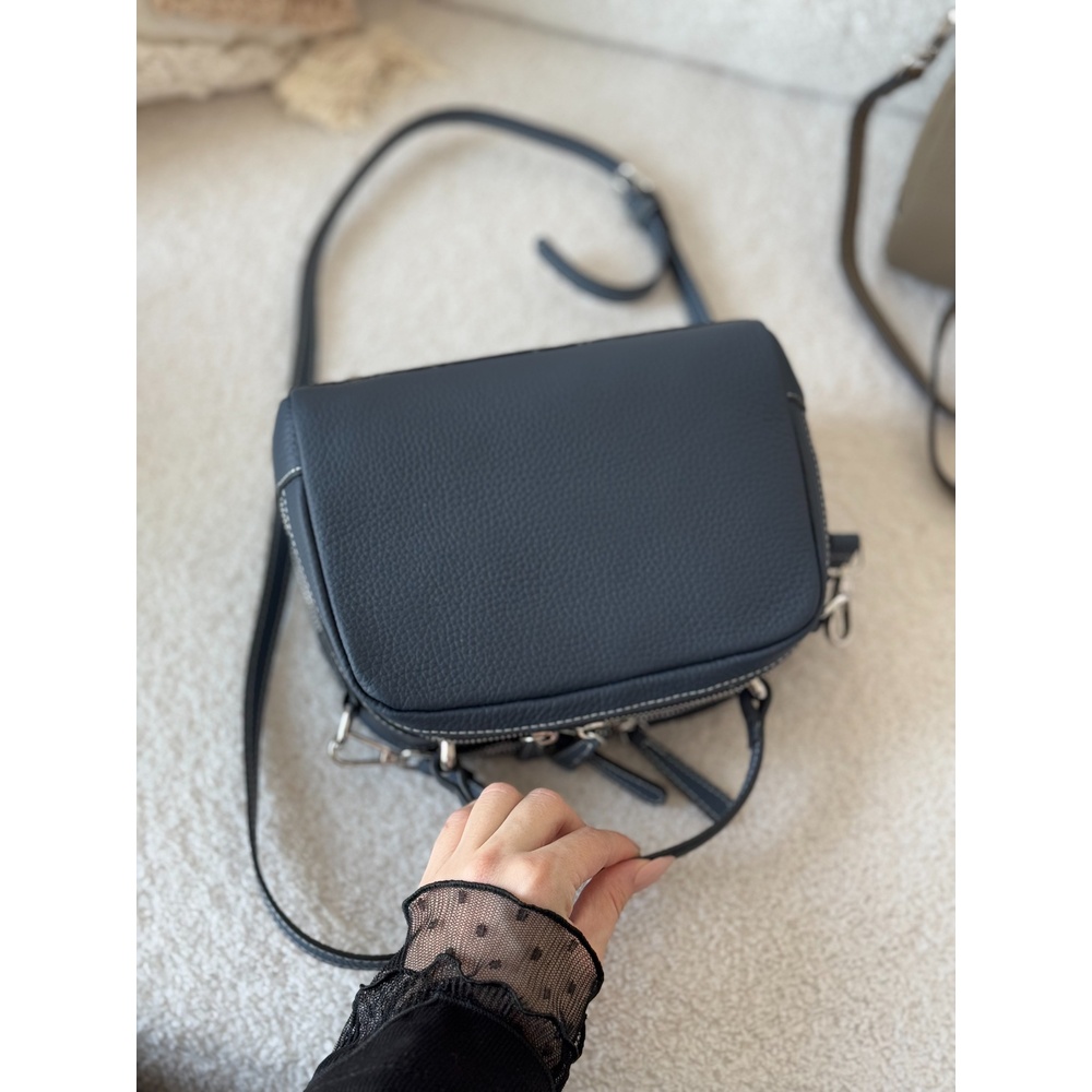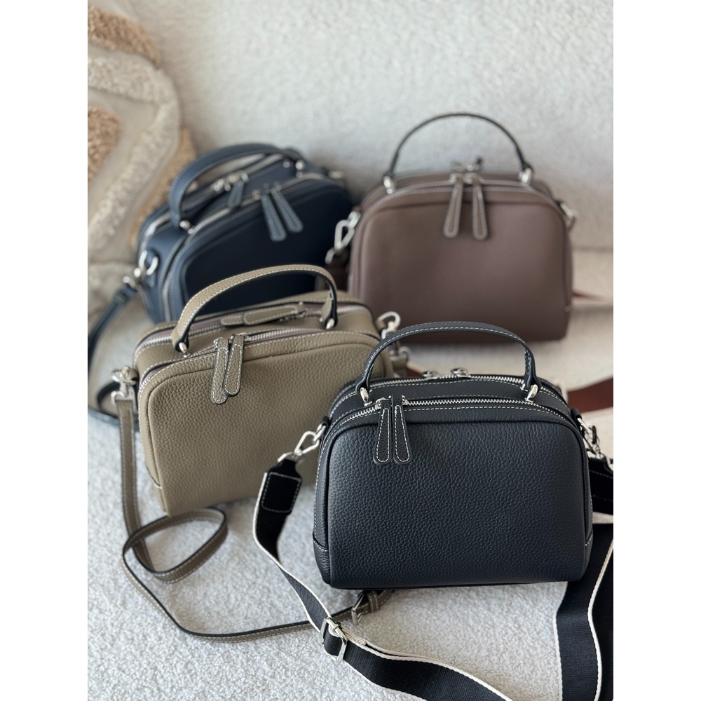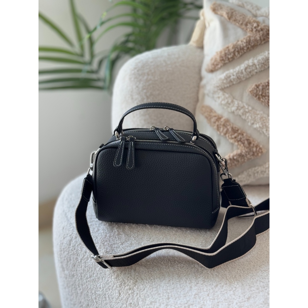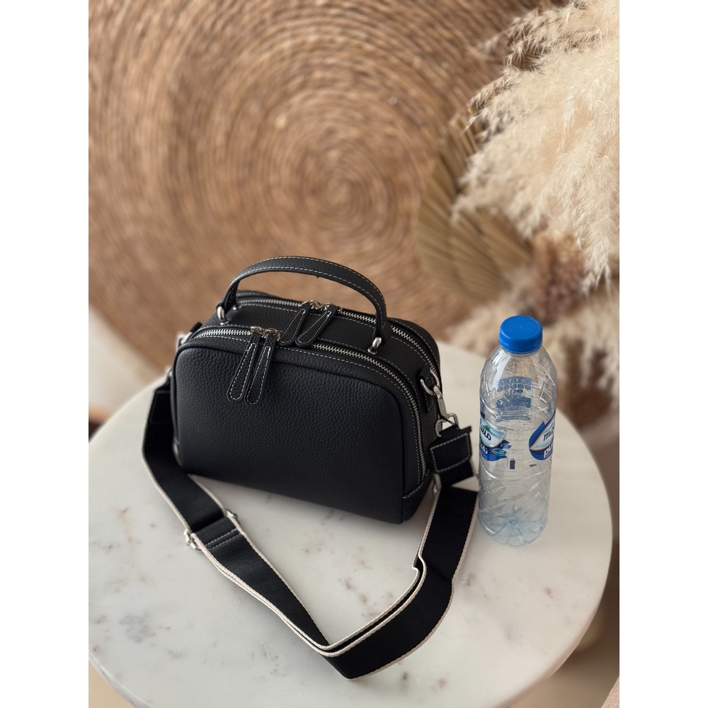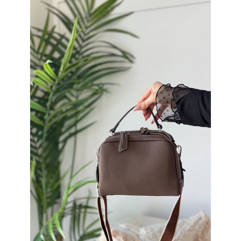 This handbag is engineered to organize your life with elegance. With its practical dimensions (23x12x18cm), it features a smart divided interior that makes arranging and finding your belongings effortless. Crafted from luxurious and durable first-class genuine leather, it includes two interchangeable straps: a sleek leather strap and a comfortable wide fabric strap. This versatility prepares you for any occasion, from formal meetings to casual outings.