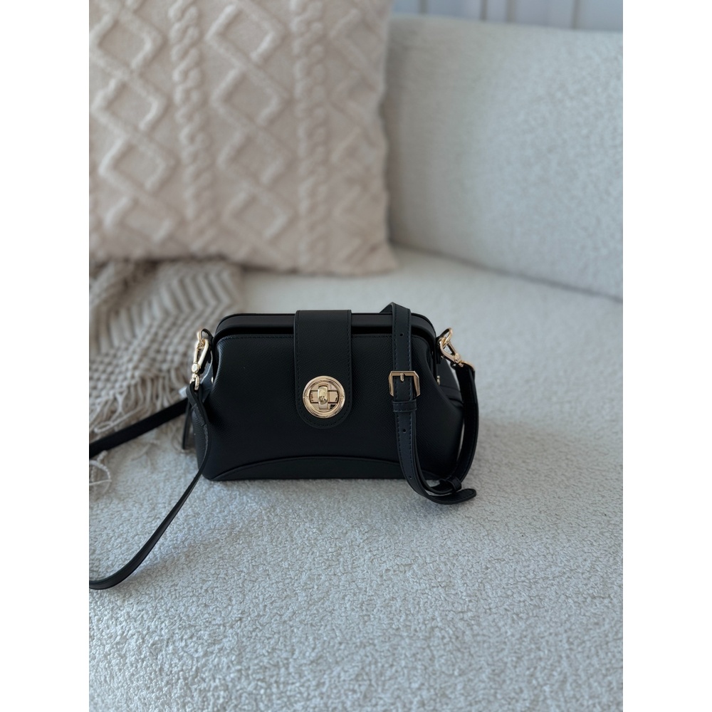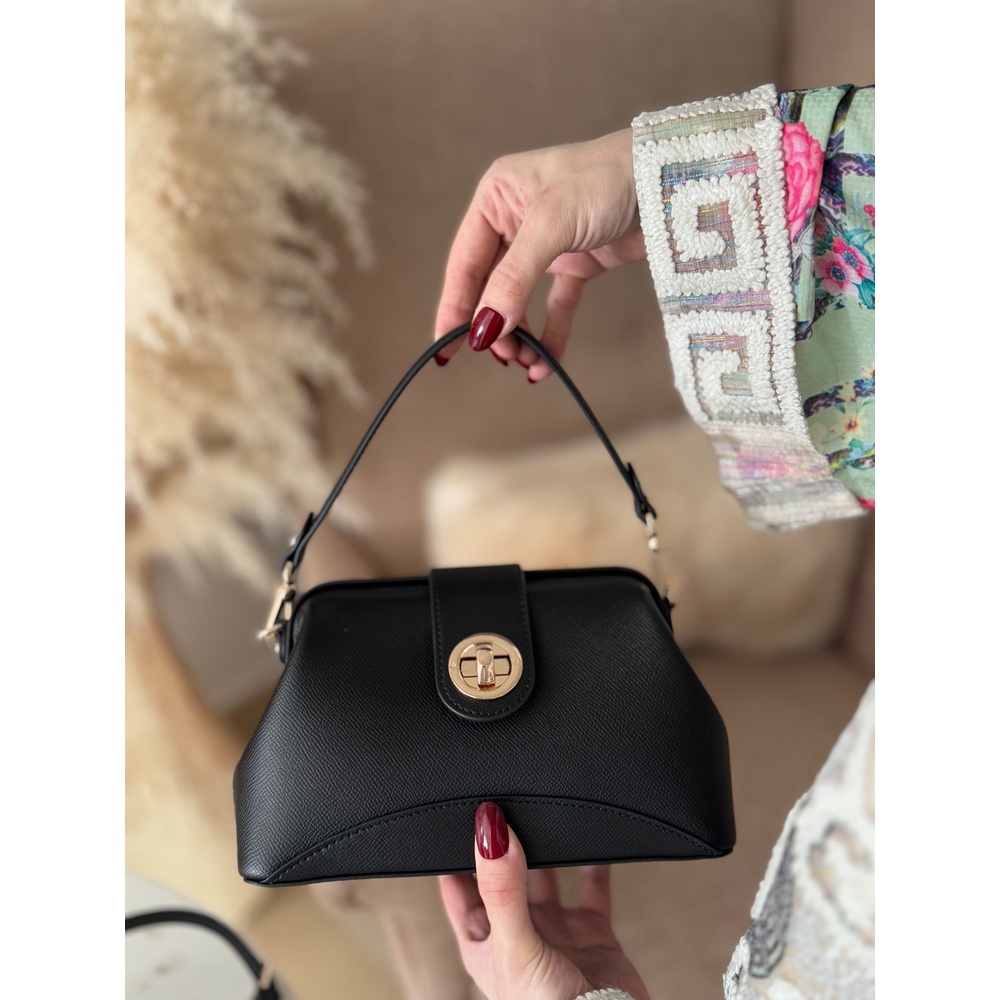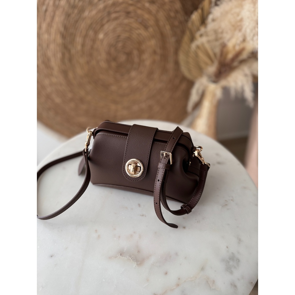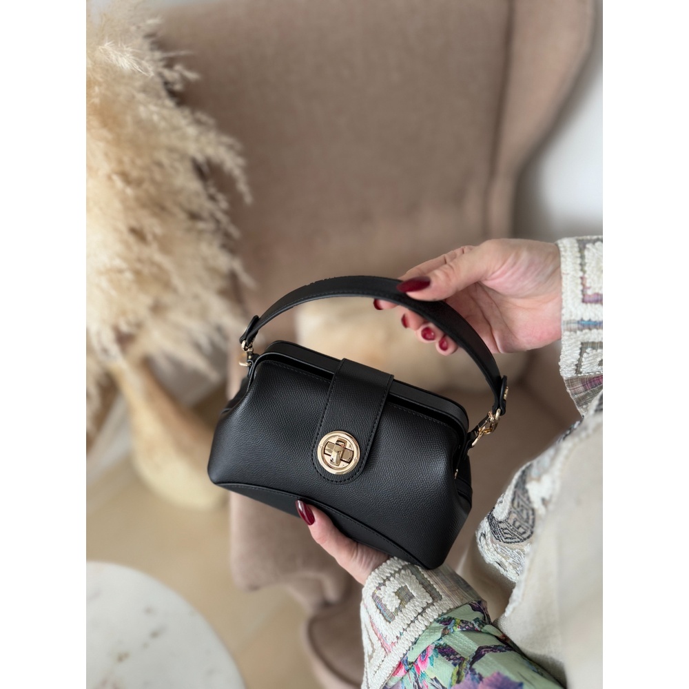 Genuine leather small crossbody bag with an elegant kiss-lock closure, top handle, and adjustable strap.