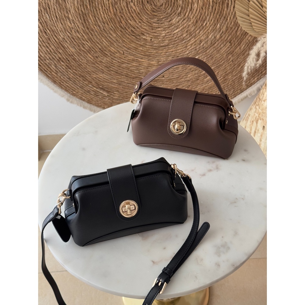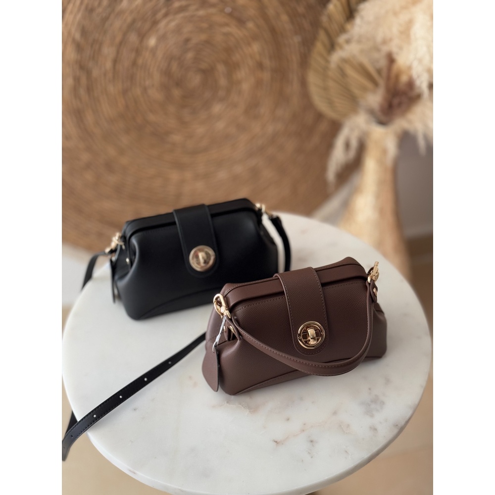 This Kiss Lock Handbag is crafted from genuine leather with a smooth, durable finish and a clean, feminine silhouette. It features a stylish metal turn-lock / kiss-lock closure for secure, premium-looking fastening, plus a sleek top handle for hand-carry styling. Inside, itโs surprisingly roomy for essentials like your phone, wallet, keys, and a small perfume. It also includes an adjustable long strap to wear it on the shoulder or crossbody. Available in colors such as black and brown (as shown).